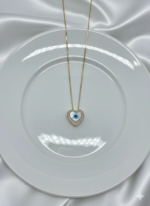 Nome: Colar Coração Olho Grego - Banhado a Ouro 18k (Dourado)